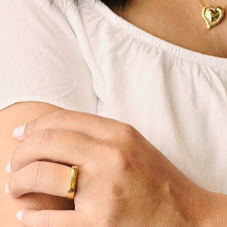 Minimalista, elegante e cheio de significado. O anel chapinha é perfeito para quem busca uma joia delicada e com um toque pessoal. Seu design liso e moderno permite a personalização com nomes, iniciais, datas ou palavras especiais, transformando a peça em uma lembrança única e afetiva. Ideal para uso diário ou para presentear quem você ama com estilo e emoção.
