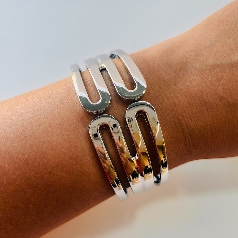 Com um design imponente e sofisticado, este bracelete liso duplo é a definição de luxo e modernidade. Seu acabamento refinado e estrutura robusta garantem presença marcante, ideal para quem deseja um acessório poderoso e versátil. Perfeito para ser usado sozinho ou combinado com outras joias, ele transforma qualquer look com requinte e personalidade.