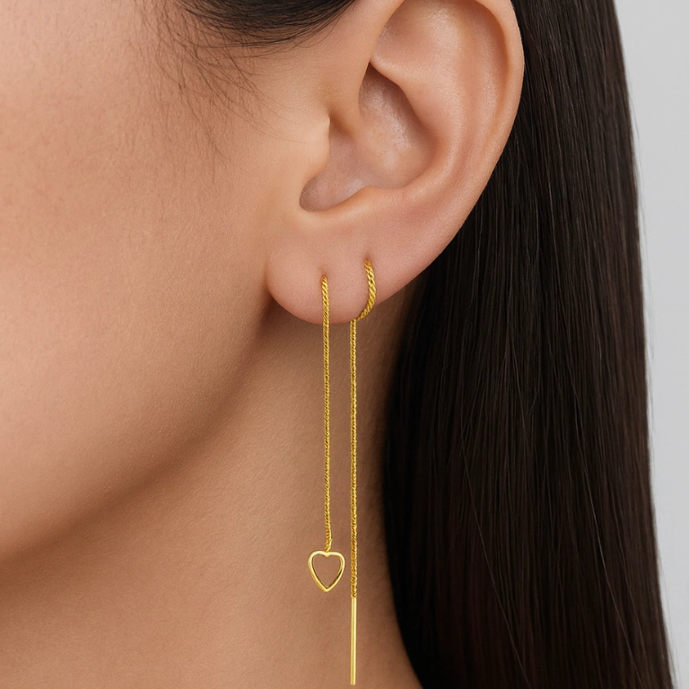 Um brinco delicado, versátil e cheio de estilo! Seu design minimalista de fio longo com um charmoso coração na ponta permite diferentes formas de uso, sendo ideal para quem tem mais de um furo na orelha e adora inovar nas combinações. Leve e sofisticado, ele traz um toque romântico e moderno para qualquer produção.