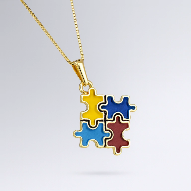 Delicada e significativa, esta corrente veneziana banhada a ouro 18k é muito mais do que um acessório. Seu pingente homenageia o orgulho autista, transmitindo uma mensagem de inclusão, respeito e carinho. O design elegante e atemporal da peça a torna perfeita para uso diário, simbolizando apoio e conscientização de uma maneira sutil e sofisticada.
